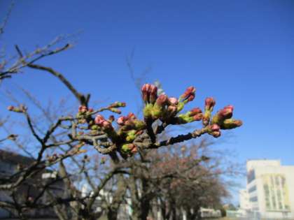 写真は、今朝8:00のものです。一昨日の写真と見比べると、かなりピンクの部分が多くなってきました。開花も近く感じます。