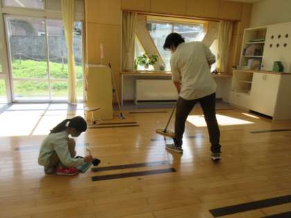 ひまわり級は、来年度から2階に引っ越しします。先週から少しずつ今の教室から新しい教室へ引っ越し作業をしていました。今日は、ほとんど引っ越しが完了し、最後の掃除をしていました。