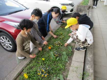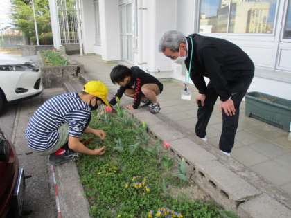 また、新1年生を迎える準備として、みんなで協力して花壇の草むしりをしました。