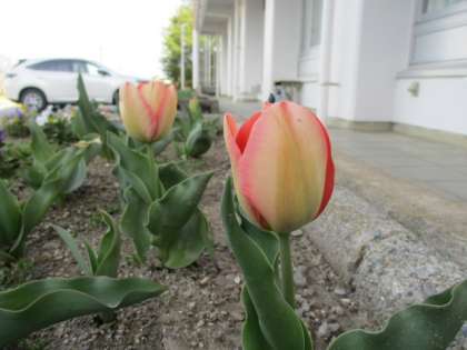 学校一花壇の世話をしている学年といえば、2年生ではないかと思いますが、3・4年生に遅れること1日、ついにチューリップの花が咲きました。