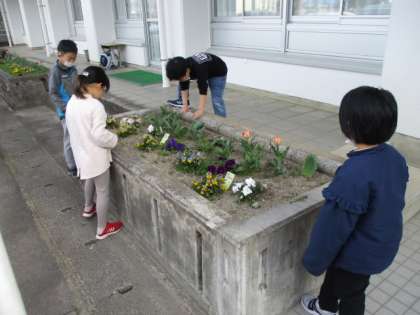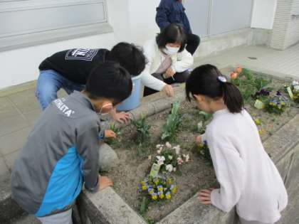 そしてまた、2年生は花壇の草むしりをしていました。きっと花も愛情を感じていることでしょう。