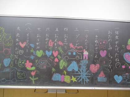 今日のお楽しみ会のプログラムもわくわくする出し物ばかりです。プログラムの周りの絵がとってもかわいくて素敵ですね。