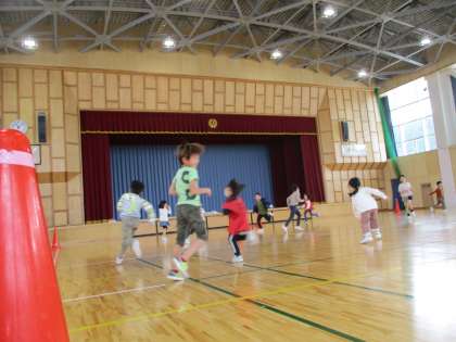 広い体育館で氷鬼をしながら力一杯走っていました。