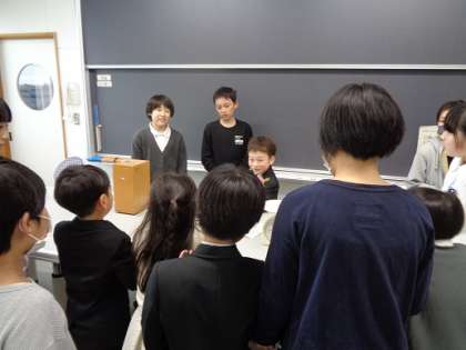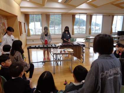 入学式を終えて、1年生と一緒に学校探検へ行ってきました。3つのグループに分かれて、学校を回ります。音楽室、理科室、図工室には担当の6年生がおり、演奏をして見せたり、実験用具や絵本の紹介をしたりしていました。学校を全て回った後は、みんなの広場でおにごっこやハンカチ落としをして遊びました。「1年生かわいかった」と嬉しそうな6年生でした。