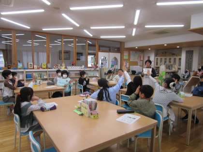 本日、5年生の図書室オリエンテーションがありました。司書の先生から、図書室の使い方や調べ学習の仕方の話を聞きました。また、本の読み聞かせや本に関するクイズもしていただき、子供たちは楽しんで本の世界に入り込んでいました。これから、たくさんの本に親しんでほしいと思います。