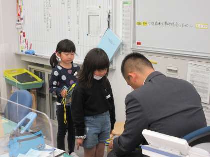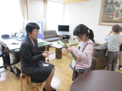 1年生は、生活科の時間に「学校探検」をします。まずは、学校におられる先生方の名前と顔を覚えるために、「なかよし大作戦」を始めました。自分で作った名刺を持って、自分から先生にあいさつに行きました。まだ、始めたばかりですが、どんどん学校のことを知ってほしいと思っています。