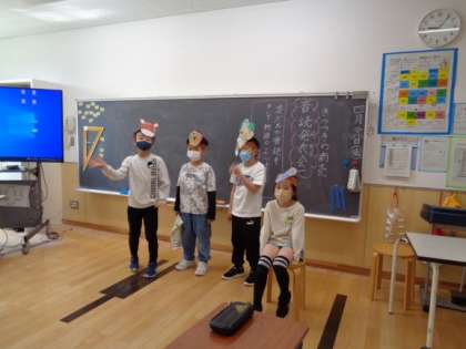 練習をしてきた「きつつきの商売」の音読発表会1を行いました。校長先生もご招待して、練習の成果を聞いてもらいました。初めて他のグループの音読を聞いたので、いろいろな工夫に感心しながら聞いていました。来週は、1年生のクラスで音読発表会2を行います。