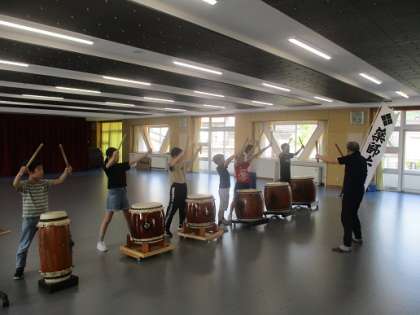 【写真左から:外国語クラブ、お茶クラブ、和太鼓クラブ】