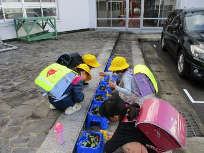 1年生は毎朝、朝顔の観察を続けています。すべての鉢から芽が出て、葉が少しずつ大きくなっています。まだまだ毎日が楽しみです。