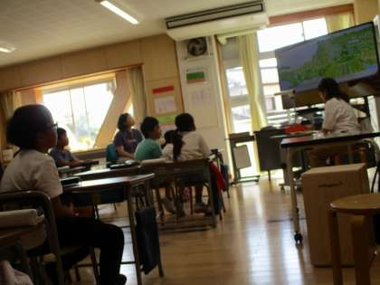 絵本の世界に、ひたっています。3年生と4年生の様子です。