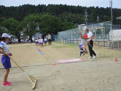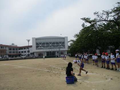 朝の涼しい時間を利用して、天下一記録会を行いました。今回は、走り幅跳びとソフトボール投げです。どの学年の子供たちも記録を出すための理想のフォームを意識して、がんばっていました。