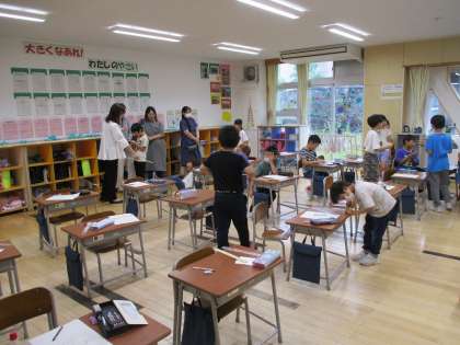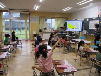 本日3時間目は、学習参観でした。多数の保護者の皆様に、子供たちの学習の様子を見ていただきました。1年生は算数で、引き算の計算カードを並べ、並べ方の決まりを見付けました。2年生も算数で、30cmものさしを使って、身の回りのものの長さをいろいろ測りました。