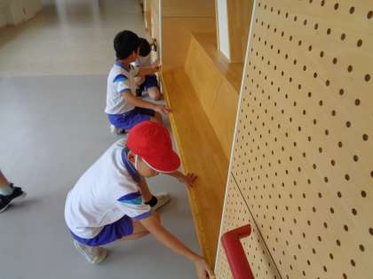学校の中の長そうなものを巻き尺を使って測りました。0のメモリに合わせること、ピンとまっすぐ伸ばして測ること、仲協力協力して測ることなど、子供たちは活動を進めるうちに自分たちで正しく測るポイントに気付いていました。見当をつけて測っていくと、3Mや5Mなど長さの感覚も分かってきたようで、見当を付けた長さと実際の長さがぴたりと合う子供もいました。実際に経験することで学習への理解が深まり、学ぶ楽しさを感じたようです。