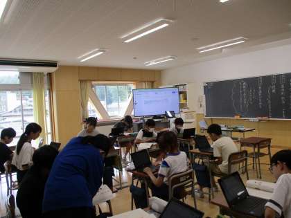 6年生は国語の学習で、十分とはいえない情報に、具体例や説明を追加して、分かりやすく伝える方法を考えています。クロームブックを使って文書を書き直したり加えたりと、上手く使いこなしています。
