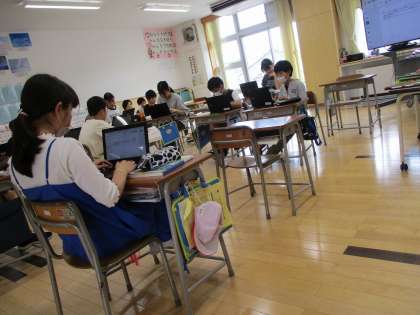 6年生は国語の学習で、十分とはいえない情報に、具体例や説明を追加して、分かりやすく伝える方法を考えています。クロームブックを使って文書を書き直したり加えたりと、上手く使いこなしています。