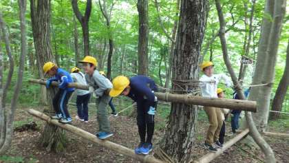 1日目最初の活動は、ワンパクゾーンでのワイルド遊びです。パワー全開!