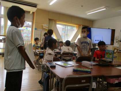 2年生は国語科で「あったらいいな」と思うものを考えています。今日は、考えたものをグループになって発表し合いました。動物と話せるマイクや、なめたら透明になれる飴など、本当にあったら楽しそうだなと思うものがたくさんありました。