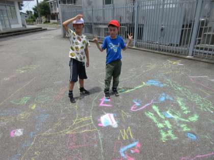 7月11日(火)「チョークで絵を描いたよー1」(1年生)