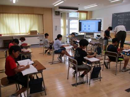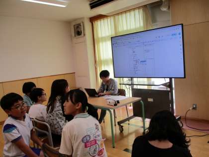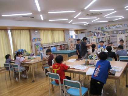 7月14日(金) 学習の様子2 公開日 2023/07/14 更新日 2023/07/14 職員室から 3年生は、図書室で調べ物の学習をしていました。本にある情報をどのように集めて、どう考えていくか、なかなか難しいけれど大切な学習ですね。4年生は、算数の問題練習中でした。できた問題から丸付けをして、身に付いたことを確認しています。5,6年生は、宿泊学習の事前学習でした。班ごとに話し合ったことを即、クロームブックに記録していました。