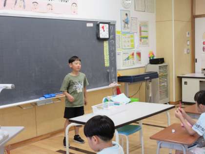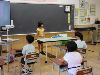 今日から1年生にとって初めての夏休みが始まりました。みなさん、有意義に過ごしてくださいね。さて、昨日の終業式の後、1学期で一番楽しかったことを発表しました。運動会や図工等、1学期の学習を思い出して発表していました。みんなの発表が終わると、先生は何と質問が来ました。私が考えていると、子供たちは、「先生の楽しかったことは、ぼくたちと出会えたことだよね」と言いました。本当に素敵な子供たちと出会えてよかったです。