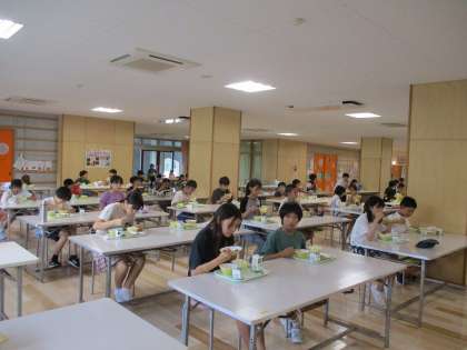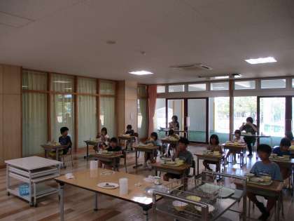 2学期の給食がスタートしました。ランチルームでの久しぶりの給食に、子供たちは、おいしそうにもりもり食べていました。