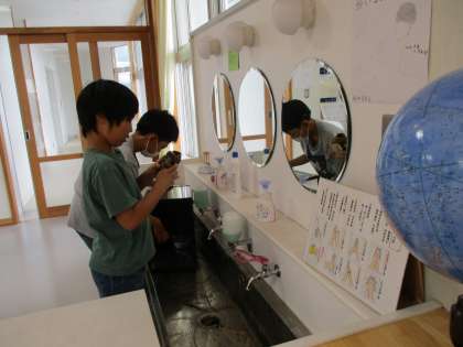 30分間のチャレンジタイムをどう過ごすかは、一人一人が考えて行動します。図書室で委員会の活動や読書、体育館でドッジボール、教室前でメダカの水槽の掃除、教室でクロームブックを使って調べもの等々。皆楽しそうです。