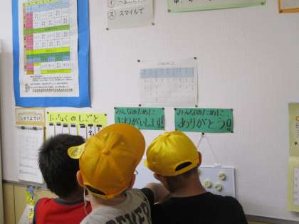 9月7日(木) 帰りの会 2年生 公開日 2023/09/08 更新日 2023/09/08 2年生 配り物をしたり、係や当番のお仕事ができたか自己チェックしたり、連絡帳を確認してもらったりと、バタバタする時間ですが、皆、無駄なくテキパキと帰りの準備を進めていました。 教室には、弓削田さんの歌が流れています。帰りの準備をしながら口ずさむ子供たち。その歌が終わるまでに準備完了。 帰りの会では、積極的に挙手をして自分の言葉で発表する姿。 皆、成長しています。
