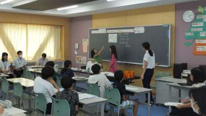 本日、富山市内の小学校から6年生の人数とほぼ同数の先生方が来校し、算数科の授業を参観されました。いつもと違う場所、雰囲気での授業でしたが、子供たちは