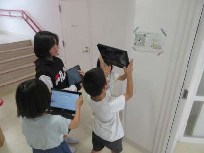 今日のチャレンジタイムにパソコンをもって校内を回る子どもたち。食育委員会クイズに取り組んでいる最中でした。パソコンを持っている理由はQRコードを読み込むためです。1・2年生も上手にパソコンを使って取り組んでいました。「この問題、何だろう?」「やった、正解だ!」等、他学年と交流しながら楽しく取り組んでいました。