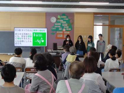 今月のカフェ和いわいには6年生が参加し、SDGsについて家庭科や総合で取り組んでいることを発表しました。発表だけでなく、地域の方々から上滝っ子のすてきなところも聞くことができ、貴重な時間になりました。