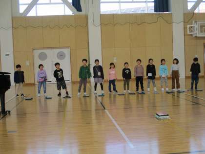 1年生は、ミュージックタイムで全校の前で発表する合唱を練習していました。