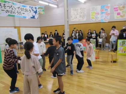 10月26日(木) 3年生、芸創で音楽の授業公開 公開日 2023/10/26 更新日 2023/10/26 3年生 富山市民芸術創造センターで、全日本音楽教育研究会全国大会が行われており、3年生の音楽の授業を公開しました。全国からいらした先生方に囲まれて、やや緊張ぎみの子供たちでしたが、これまでの学習の成果を発揮して、上滝っ子らしい美しい歌声を披露することができました。
