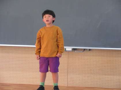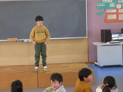 10月31日(火)「好きな歌を歌ったよ」(1年生) 公開日 2023/10/31 更新日 2023/10/31 1年生 今日の音楽は、自分の好きな歌を6年生に紹介する時間でした。まずは、班のリーダーさんの前で歌い、その後、6年生全員の前で歌いました。最初は、とても緊張していたようですが、一生懸命に歌っていました。がんばっている1年生の姿がとても素敵でした。