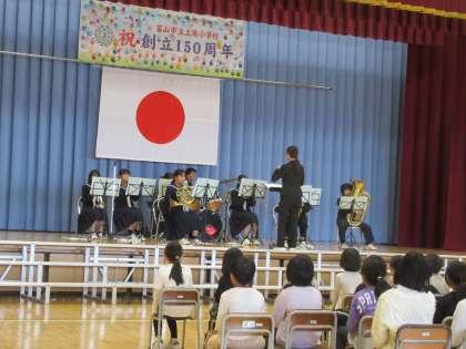 第二部・お祝いの会では、上滝中学校の吹奏楽部の皆さんによる演奏があり、子供たちも手拍子をしてノリノリでした。