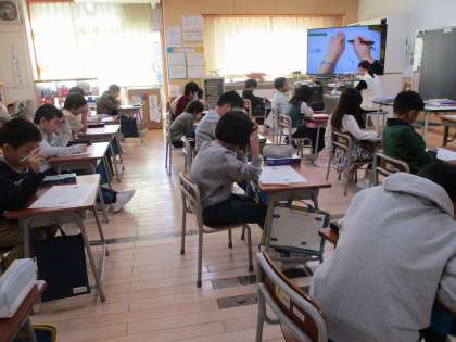 1年生も2年生も、「学習のたしかめ」の復習をしていました。学習したことの定着度をみる一つの方法としてテストがあります。そして、丸付けをしてもらってからの間違い直しや復習を丁寧にすることで、学習の定着度がさらにアップします。