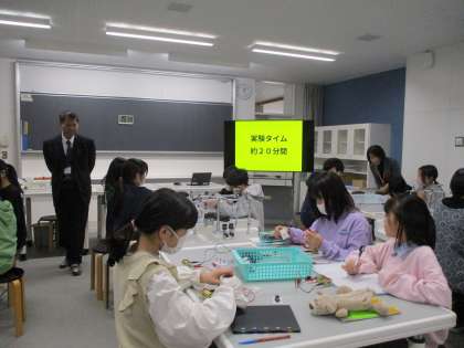 放課後は、本校教員向けに研修会も行っていただき、実験を体験しながら、授業のポイントを学びました。