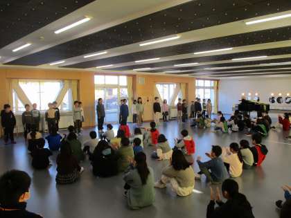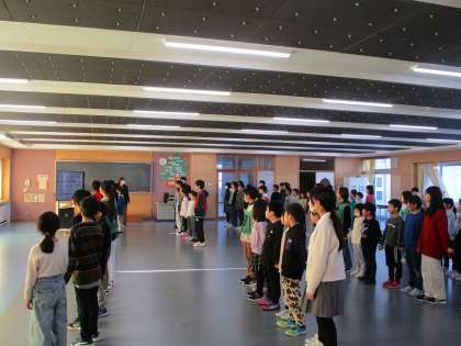 3学期最初のミュージックタイムでした。2年生と4年生の合同チームが、今月の歌を披露してくれました。その後、全校でポイント指導をしてもらいながら歌いました。子供たちの歌声は、いつも優しい気持ちにしてくれます。