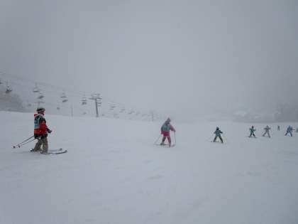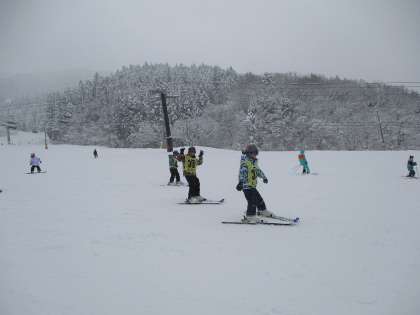 リフトに乗って、何回もゲレンデを滑り降りていました。昼食のカレーライスもあっという間に完食。帰りのバスの中は、疲れて寝ている子供たち。とても充実した1日でした。