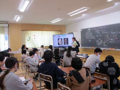 6年生は保健分野、病気の予防についての学習です。健康な肺と喫煙によって黒くなった肺の写真を見て、驚いていました。
