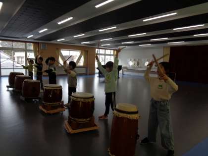 2月異世代交流学習 薬師太鼓1(3年生)