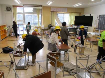 今日は修了式でした。1年間のしめくくりの日です。子供たちは、下駄箱や机の脚など、普段できないところをきれいにしていました。