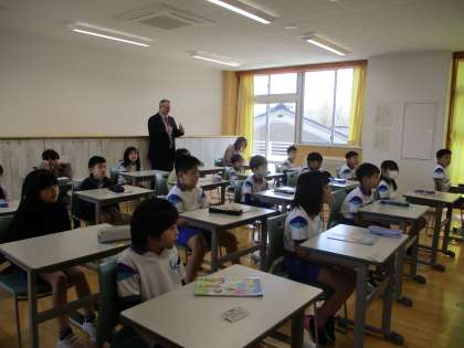 今日は3年生になって最初の外国語を行いました。初めての教室、初めての先生に緊張気味の3年生でしたが、外国語の先生の自己紹介では、英語を聞きながら楽しく先生の好きなものや小さい頃のことを知ることができました。「外国語の先生の話がとてもおもしろかった」「次の外国語も楽しみ」と、新しい学習にいいスタートが切れた3年生でした。