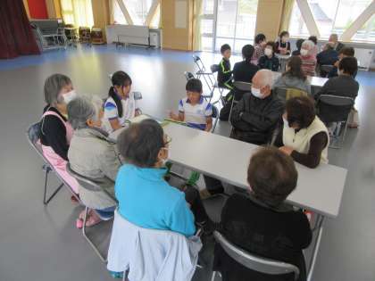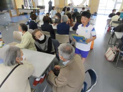 5年生の今年度の総合のテーマは学年目標にもなっている「つながり」です。最初の活動としてカフェ和いわいに参加しえいる方にインタビューを行いました。「どうしてカフェ和いわいに参加しているんですか」「上滝はこれからどのようになってほしいと思っていますか」など、様々な質問に答えていただきました。子供たちは最初は緊張していましたが、たくさん話すうちに楽しくなってきており、終わった後には「またお話したい」と感想を話す子もいました。