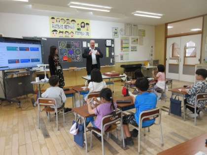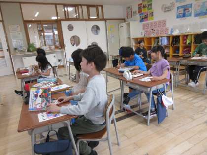 今日の英語活動は、色の読み方を学習しました。赤、青、黄色等を英語で言ったり、好きな色を選んだりしました。青や黒等、落ち着いた色が人気でした。最後は、色のBINGOをしました。みんな列が揃って大喜びでした。