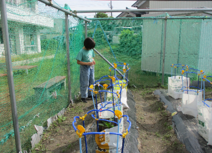 生活科の学習で、1年生はあさがお、2年生は野菜を育てています。