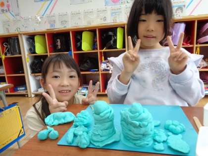 今日の図工は「ねんどでごちそう なにつくろう?」でした。ねんどを使って、思い思いにごちそうを作っていました。ごはんからデザートまで、どれも美味しそうなごちそうばかりでした。