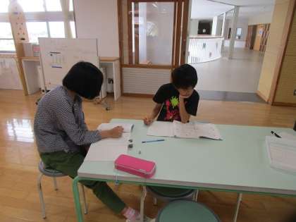 6年生の算数は、分数のかけ算や割り算の学習に取り組んでいます。計算の仕方や計算の意味について、自分でじっくり考える、友達と一緒に考える、先生に教えてもらう等、自分で学び方を選んでいます。自分に合った学び方を考え選んでいる姿から、これまでの確かな学習経験の積み重ねを感じます。
