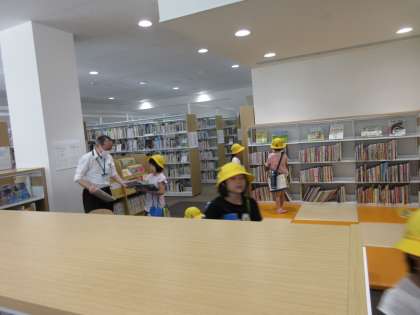 図書館から2年生が招待され、12名で行ってきました。富山市の図書館の場所や本の冊数等を教えていただき、富山市の図書の本を重ねると、宇宙まで届くと知り、子供たちはびっくりしていました。その後、読み聞かせや本の紹介(今日のテーマは天気)がありました。「おじさんのかさ」「かみなり」等、今の季節にぴったりの本でした。最後に、自分で選んだ本を借りました。パソコンを使って、自分で操作して借りることができ、子供たちは大喜びでした。