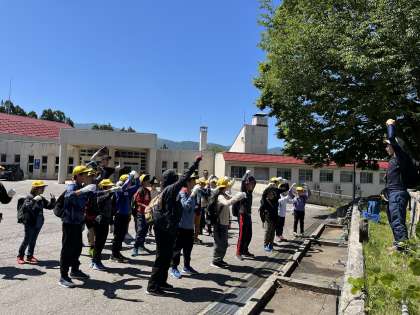 6月19日(水)5・6年生 宿泊学習2 公開日 2024/06/19 更新日 2024/06/19 6年生 来拝山登山が始まりました。 安全に登山できるよう、気合いを入れました。 真っ青な空で気持ちがいいですね。