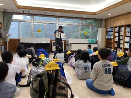 続いて行われたオリエンテーションでは、守ってほしい5つのルール(室内や屋外を走らない・危険ロープの先には行かない・虫や植物にむやみに触らない・ドアや窓を閉める・石を持っていったり投げたりしない)とシーツや毛布の使い方について説明されました。